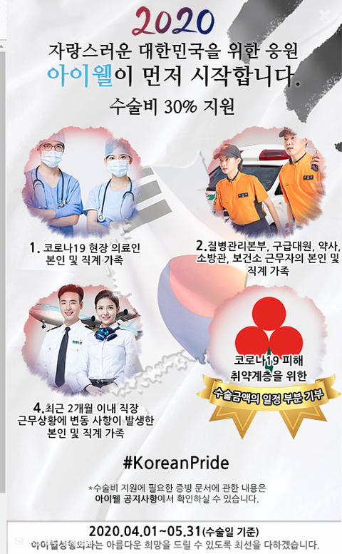 봤는데 코로나19때문에 힘든 사람들한테 수술비 할인해 준다는 공지임