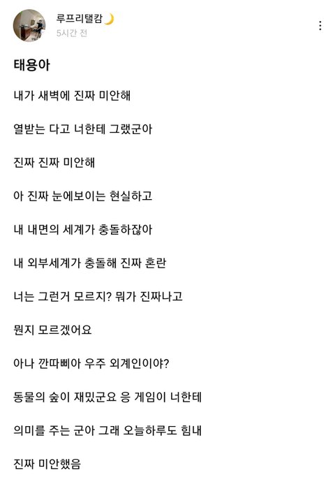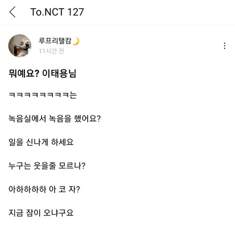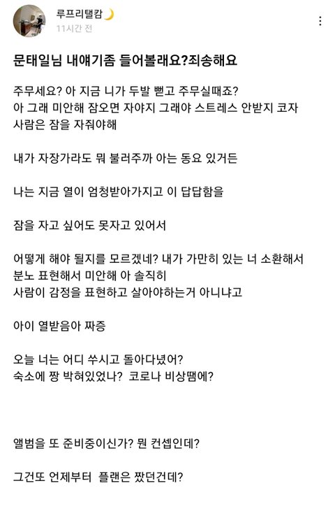 타커뮤에서 주웠는데 이런식으로 두서없이 이상한 말 계속하는 사람이 있대ㅠㅠ 멤들이 봐서 좋을 것 없는것 같은데 다들 리슨에서 보면 신고 한번씩만 눌러주장..