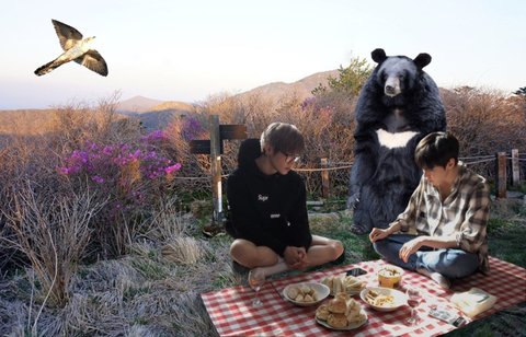 방구석 지리산으로 피크닉 가서 기껏 만든 거 안 먹고 진짜장 먹음ㅋㅋㅋㅋㅋㅋ 반달가슴곰한테 진짜장도 주고 나는 개인적으로는 이 브이앱이 제일 재밌었어 (그리고 지리산 와이파이 구렸음)