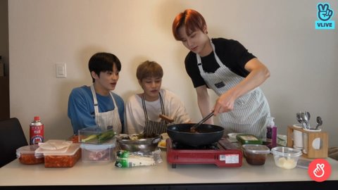 요즘 거의 삼겹살만 먹는다는 127은 릴레이 브이앱에서도 삼겹살을 먹음ㅋㅋㅋㅋ