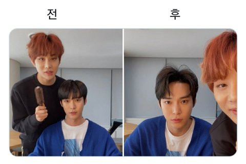 정우가 한 도영이 머리ㅋㅋㅋㅋㅋ 얼굴이 잘생겨서 괜찮아