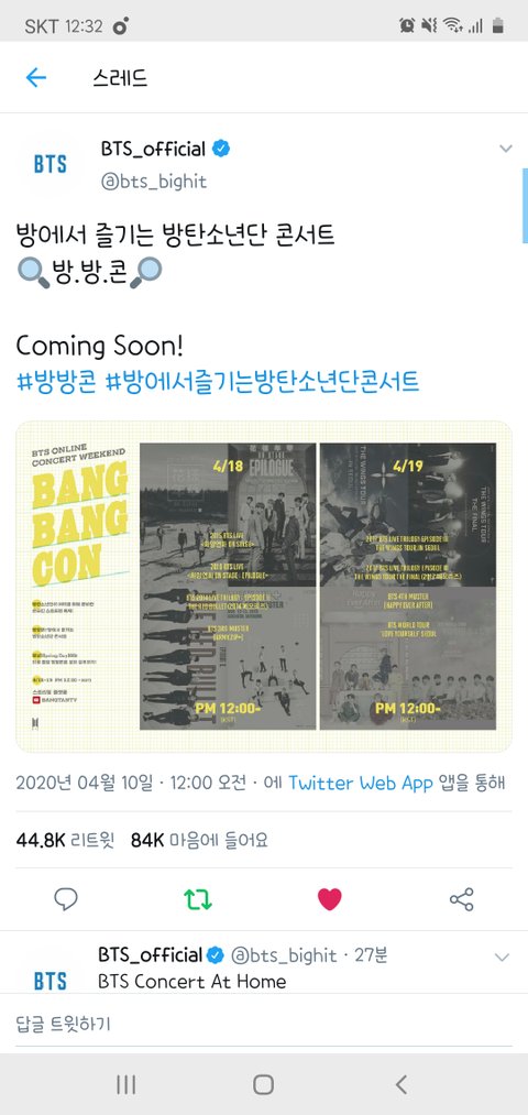 너희들 맵솔콘 서울 하는날 "방에서 즐기는 방탄소년단 콘서트"하는거 ㅠㅠㅠㅠ