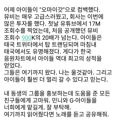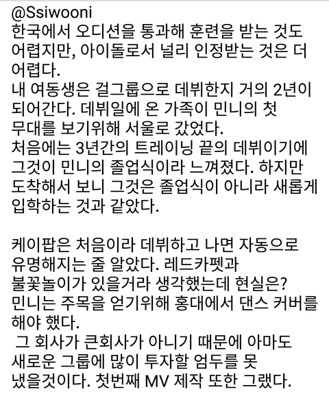 그리고 이건 민니 오빠분이 올려주신 건데 정말 힘들게 여기까지 올라온 애들이니까 욕좀 그만해줘...