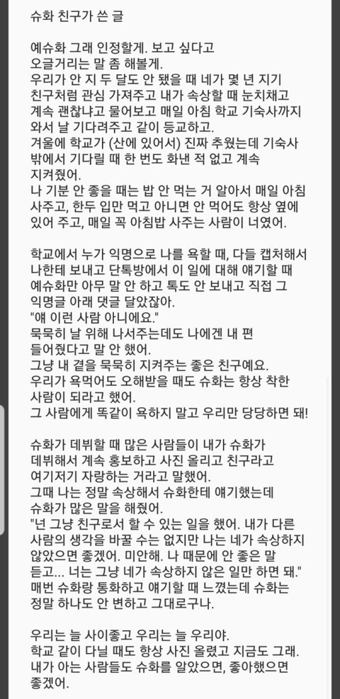 그리고 마지막으로 슈화도 본인이 부족한 점 잘 알고 끝까지 남아서 연습하고 가는 독종이니까 예쁘게 봐주라 ㅠㅠ