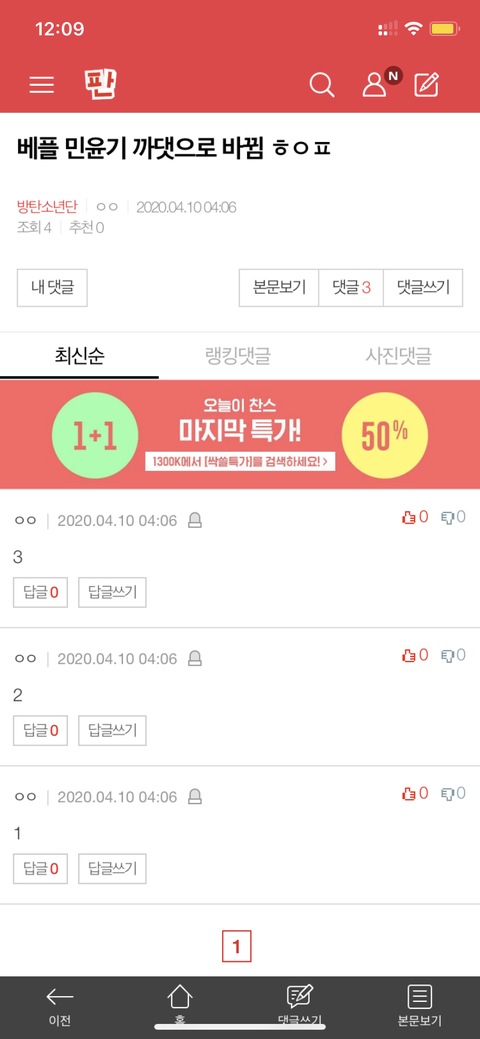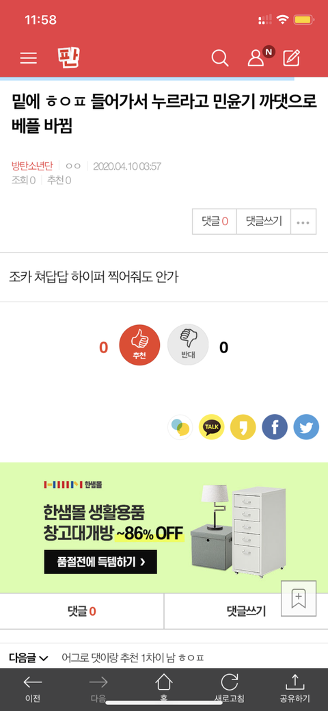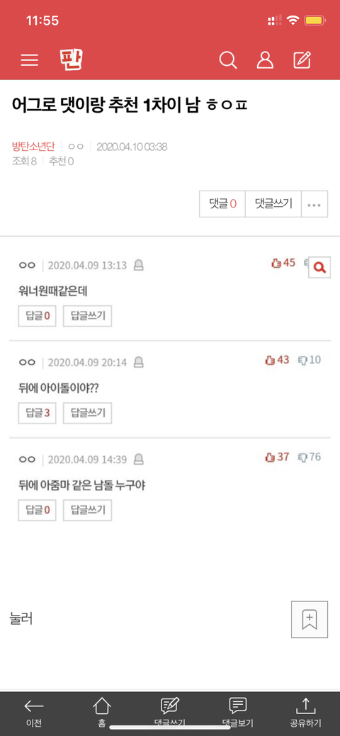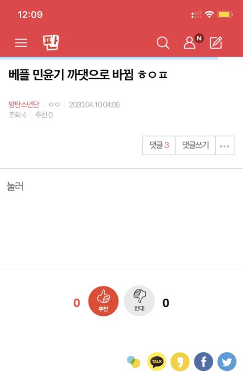 밑에 ㅎㅇㅍ 들어가서 누르라고 민윤기 까댓으로 베플 바뀜