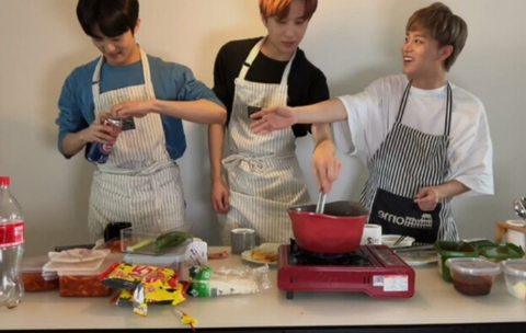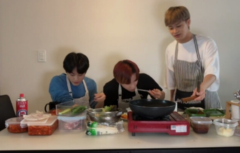 숙소 같은 층 멤버 셋이서 삼겹살 굽기 대회함