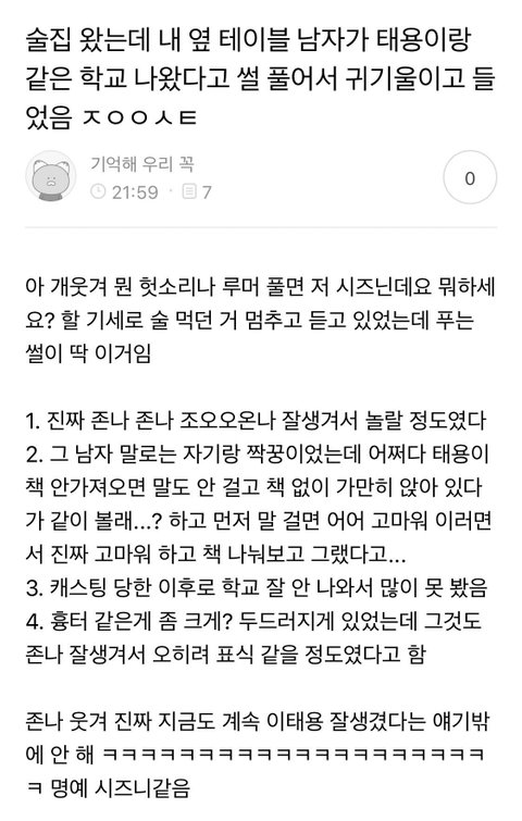 아 진짜 귀엽다 ㅋㅋㅋ ㅠㅠ 나도 같은학교였으면 얼마나 좋았을까 ㅅㅂ