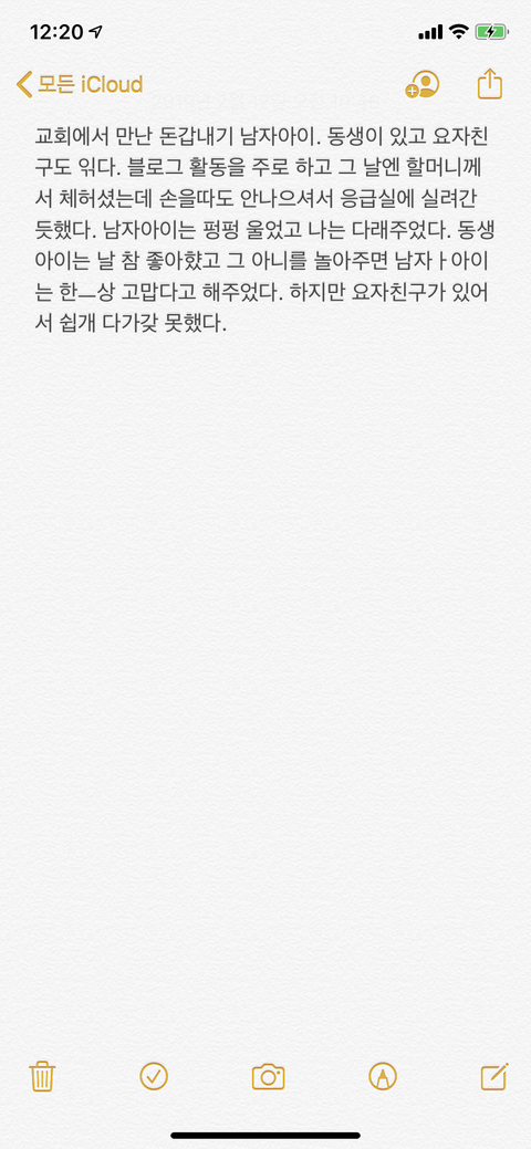 기억하고 싶을만큼 좋았거나 설레거나 하는 꿈들을 일어나자마자 메모장에 적어놓거든? 나는 딱 꿈 깨고 2분 정도 지나면 기억에서 사라져서 비몽사몽 상태에서 적는데 되게 신기한게 안 적으면 나중에 기억 1도 안 나는데 적어놓으면 나중에 조금씩 기억 남...