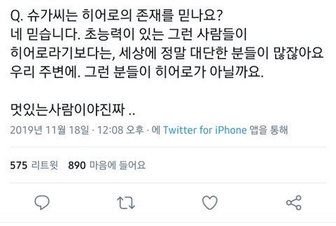 슈가는 전에도 이런 말 한 적이 있음. 진짜 멋있어