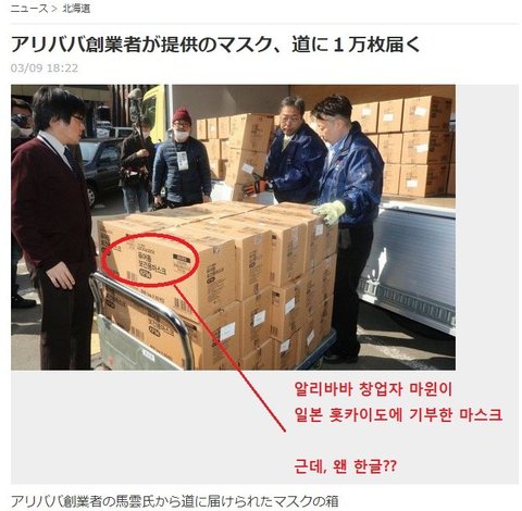 알리바바 마윈 회장은 한국산 kf94 마스크를 일본에 기부하고 있고요