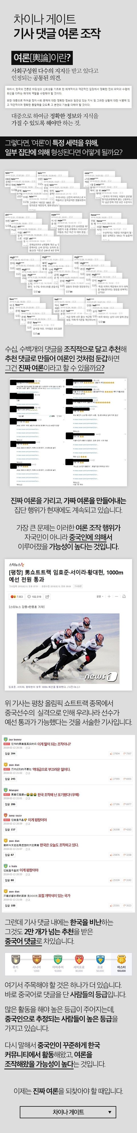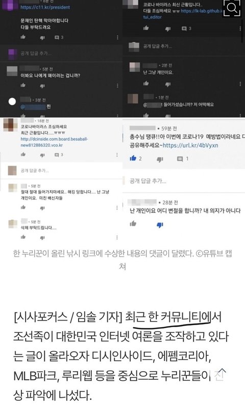 다들 한번쯤 들어보셨거나 여기서 처음 들으실텐데, 한마디로 중국인이 우리 여론을 지배하고 있다는 내용이에요.