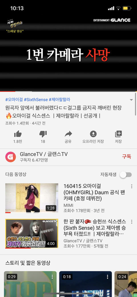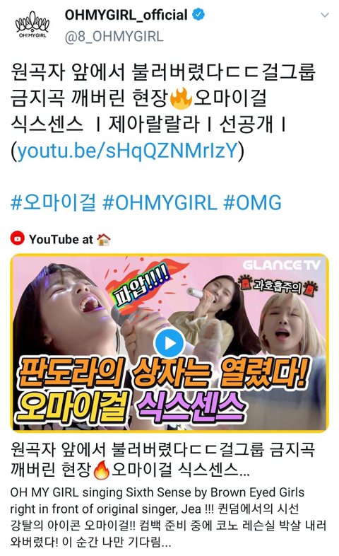 추가할게 난 오마이걸 러블리즈 팬 둘 다 아니고 좋아하는 편인데 저게 오마이걸 공식 계정이나 팬 계정도 아닌 글랜스티비 영상이니까 가수는 욕 하지 말아줬음 좋겠다