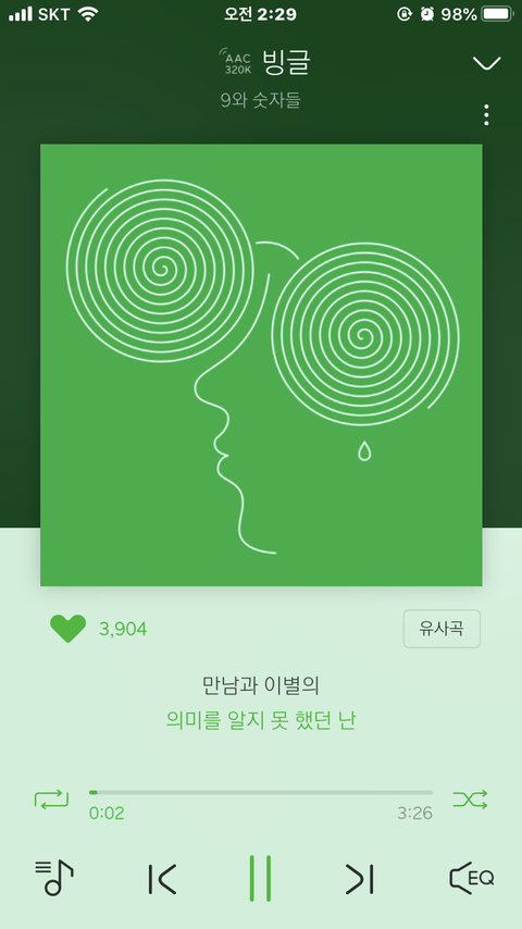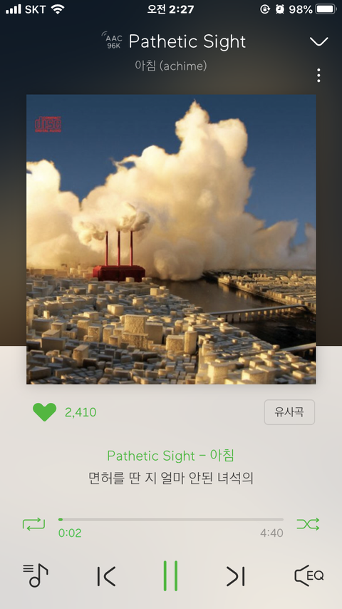 이 노래는 진짜 인생곡중에 인생곡.. 이번에 추천하는 노래중에서 얼마안되는 밴드곡 아닌 곡일 것 같은데 개 좋 아ㅜ 아는 사람도 꽤 있을 것 같은데 그래도 추천하고 싶었어 뭐 엄청 특별한 부분이 있는 것도 아닌데 진짜 안 질리고 너무 좋아 꼭 들어줘......
