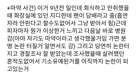 진짜 그놈의 대마초 냄새때문에 모를일 없다, 담배처럼 생겼어도 바로 안다 이렇게 말하는 사람들 엄청 많은데 그래 그 이상한 냄새때문에 한입 피고 버렸다고ㅋㅋㅋㅋㅋ국과수 검사결과로 증명됨 1차에 음성 뜨고 2차에선 법적처리 기준 미달인 아주 극미량의 양성반응 뜬거고ㅋㅋㅋㅋㅋ 이렇게 설명해줘도 응 어차피 지디 마약했잖아 이러는 사람들이 천지임 진심 ㅈㄴ 답답해