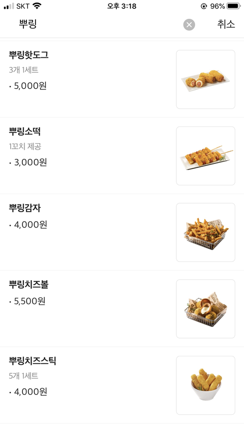 치즈볼 핫도그 넣엇고 한개더넣을건데 소떡소떡은 빼고 추천해주라 중복도되 감튀나 치즈스틱은 안먹어봐서 몰겟음