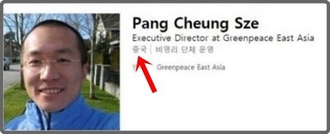 한국 그린피스 대표인데 저사람 중국인이야