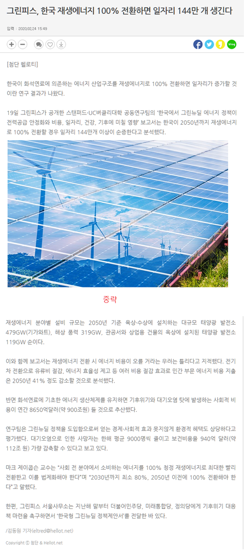 그런데 이렇게 얘네들이 태양광을 광고하는데는 이유가 있는데...2020년도 2월달 최신 뉴스잖아?