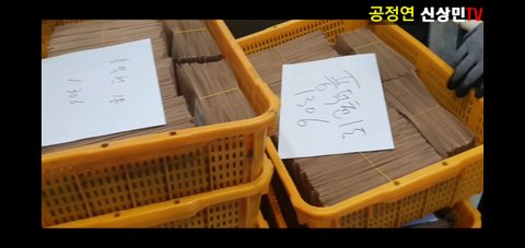 투표함 봉인도 없이 사전투표용지를 바구니에 담아 가고 우체국에 옮기는 모습이다