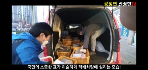 사전투표 선관위사무실에서 우체국까지 옮기는모습