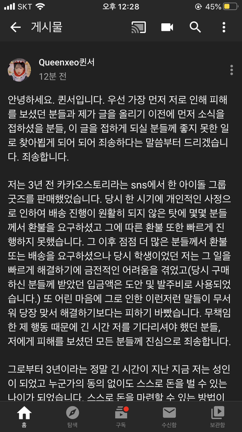 얘들아 ㅋㅅ 사과문 올라옴 ㅋㅋ~