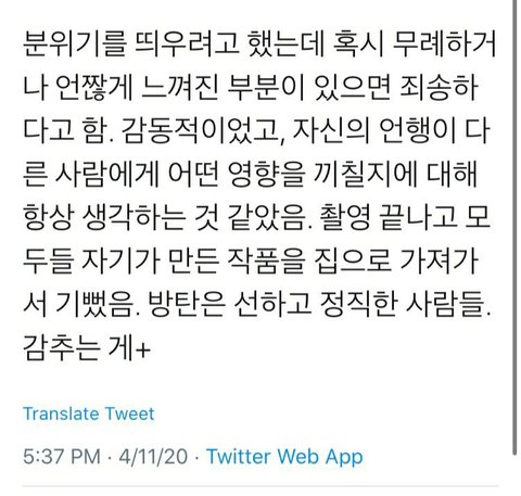 촬영이 끝나고 이렇게 말했다고...
