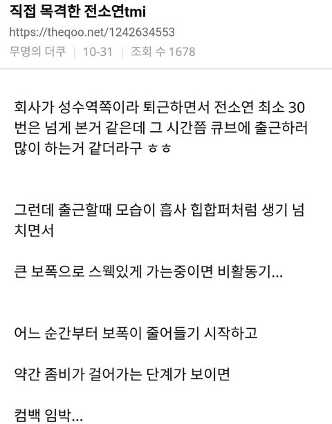 이건 그 유명한 컴백 직전 전소연썰...ㅋㅋㅋㅋㅋ