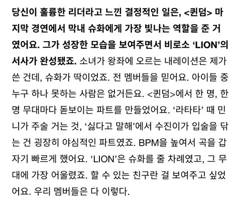 팬사랑은 물론이고 멤버사랑도 쩌는게 드러나는 소연이 인터뷰. 가이드 음원 녹음할 때도 멤버들 목소리 개성을 잘 살리고 싶어서 일부러 멤버들 모창해서 녹음한대ㅠㅠㅠ