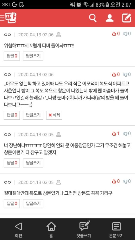 웬 아줌마가 언니 방 들여다보고있는거..난 진짜 놀랬는데 언니랑 이모랑 이모부 사촌오빠는 다 아무렇지않아하더라...익숙하다고