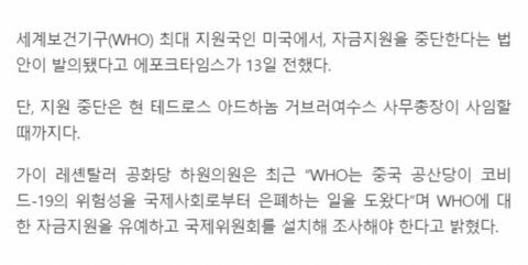 속보) 미국 드디어 WHO한테 칼을 뽑음
