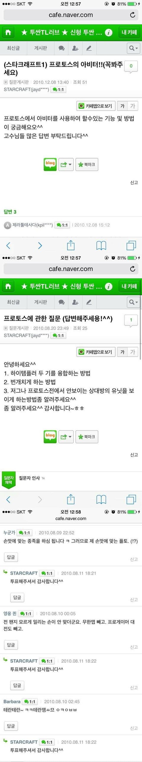 조카 웃긴거 ㅋㅌㅋㅋㅋ 저번에 저 스타크래프트 댓글에 누가 님 게임 첨해봄? 뭐 이렇게 시비 걸었었는데 정재현이 ㄴㄴ ㄱㅅ 이렇게 담 ㅋㅌㅋㅋㅋㅋㅋㅋ