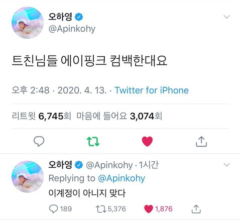 에이핑크 컴백한다고 직접 홍보하는 에핑 막내 오하영