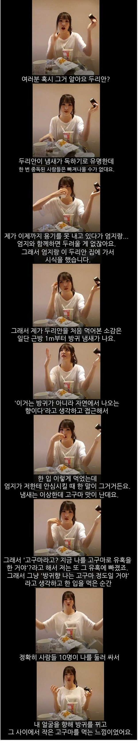 사진은 내가 생각하는 내 본진의 개그캐 유주가 두리안을 먹고 난 후기야!(판에서 주웠어)