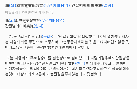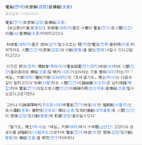 그리고 아래는 호세 델가도 실험에 대해서 나온 신문입니다.