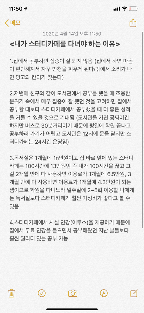 엄마한테 스터디카페 보내달라고 설득문 쓰고 있는데