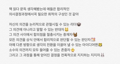 더 생각나는 건 소수의 의견도 추합할 수 있다 이거랑 거기에 충실히 따른다?? 이런 멤도 있었고.. 혹시 아는 이삐는 알려주고나 짤 좀 보여줄 수 있을까 ㅠㅠ