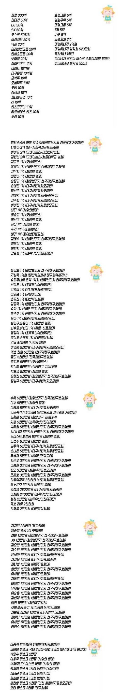 대구시가 받은 후원 내역ㄷㄷㄷ