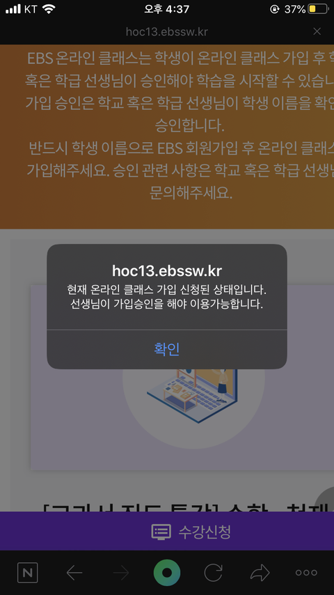 저거뜨면 어떻게 해야돼? 저 말이 무슨 가입을 해야 수강신청 가능하단 거 아님?? 근데 나 수학 수강신청해야되는데 저거 때문에 신청 못하는거아냐? 담임쌤한테 물어보니까 저 수강 과목 선생님이 승인을 해주는거라는데
