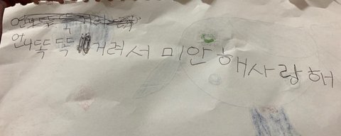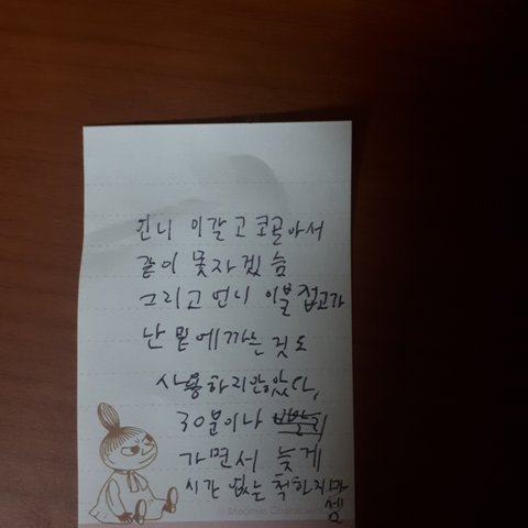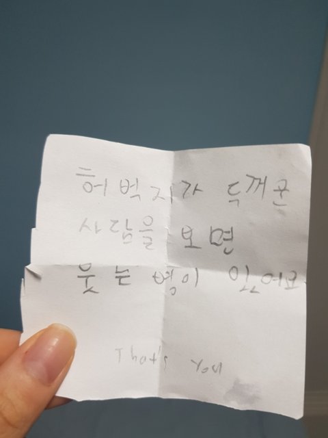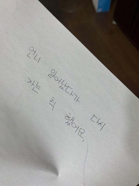아빠랑 싸우고 문 닫고 방에 있었는데 동생이 똑똑 거리길래 하지말랬더니 이거 주고 감 ㅠㅠ