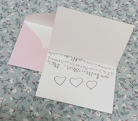 동생이 오늘 새벽에 악몽을 꿔서 내가 옆에서 재워줬는데 방금 이렇게 편지써옴ㅋㅋㅋㅋㅋㅋㅋ개귀여워 진짜;; 6살인데 맨날 커서 부자 돼서 내 화장품이랑 사탕 잔뜩 사주겠다 함ㅎㅎ 요즘 동생 보는 재미로 산다