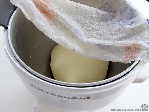 히팅 보울 온도를 30도로 맞춰놓고 반죽을 넣은 후, 젖은 천을 덮어줍니다.