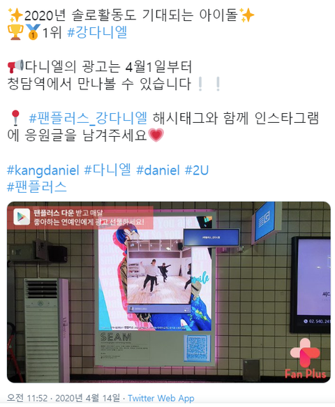 4월 14일에 알렸넼ㅋㅋ 청담역에 팬플러스 광고판 걸렸대
