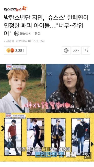 “방탄 지민, 옷 젤 잘 입는 연예인으로 선정”