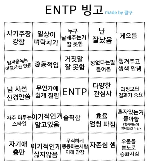 야 ENTP 다 들어와