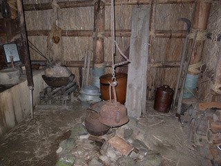 입구 반대쪽 옥수수를 말리던 창문은 박살났고 거실에는 그을려있는 장작 몇 개가 굴러다니고