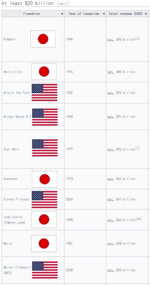 20억 달러 이상을 벌어들인 문화 프랜차이즈