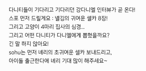 곧 사진이랑 집사 심경인터뷰 나올예정인가봐