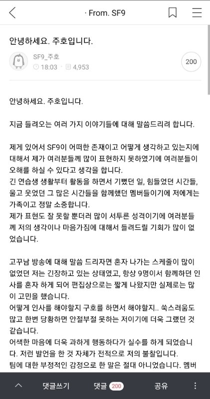 백주호 사과문 올라옴