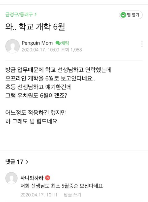 학사일정으로 5월초개학이라고 궁예하는것보다 저런게 더 믿음감 ㅋㅋㅋ