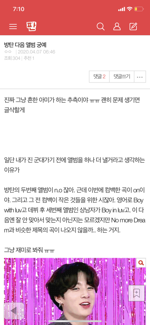 와 미친 내가 방탄 컴백할거라고 몇주 전에 글 썼는데 다 컴백 안 할것 같다고 했거든 ㅠㅠ 진짜 억울한데 또 너무 기쁘다ㅠㅠ