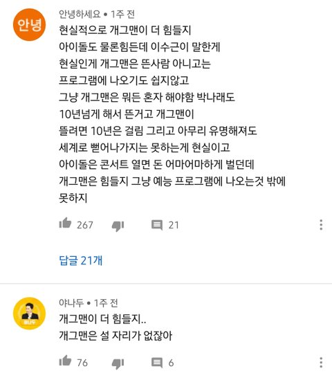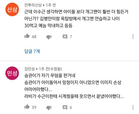 개그맨이 설 자리가 없는건 맞지만 욕 먹는거나 정신적인 고통은 아이돌 압승이라 생각함 ㅜ